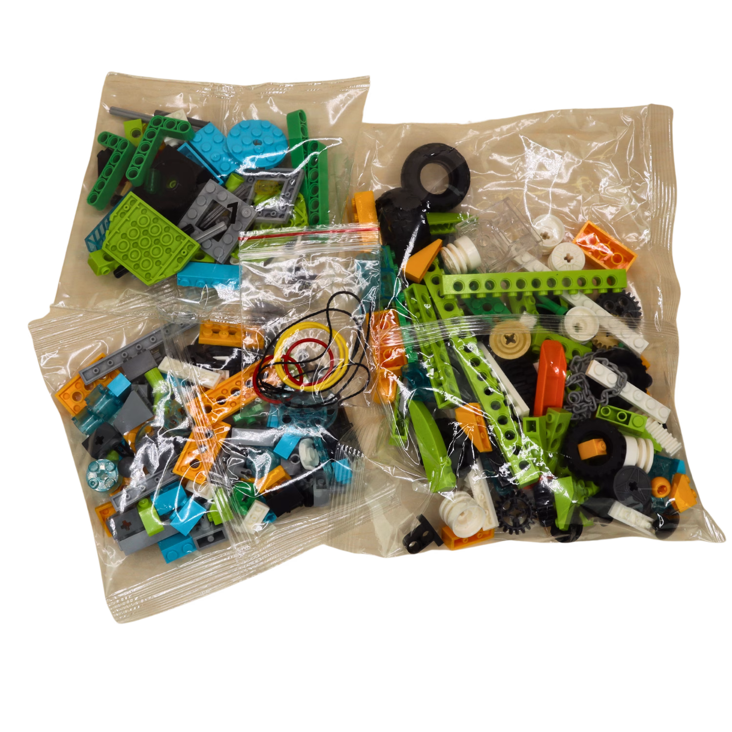 - Τι περιλαμβάνει: Πλήθος από πολύχρωμα τουβλάκια, άξονες, γρανάζια, τροχαλίες, ιμάντες, πινάκια σύνδεσης (pins) και δοκούς (beams). Είναι όλα τα δομικά στοιχεία του βασικού σετ, συγκεντρωμένα σε ένα πακέτο!